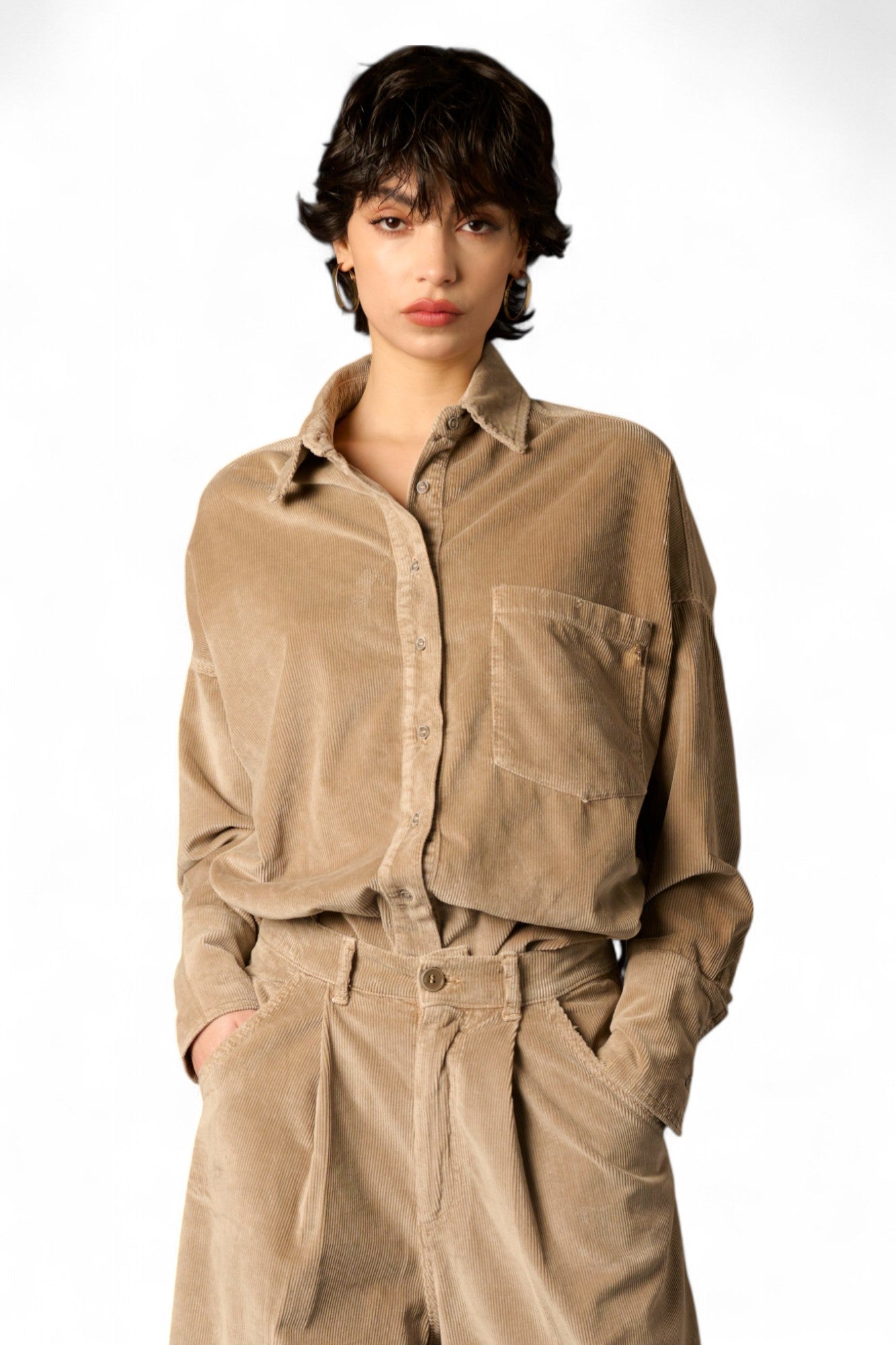 Il camicione Peach in velluto misto modal è il capo versatile che non può mancare nel tuo guardaroba. Morbido e lucente, si indossa facilmente come overshirt aperta su un jeans o chiusa e sblusata per un look più definito. Abbinato ai bermuda Haze nello stesso tessuto, crea l’effetto di una jumpsuit comoda e di tendenza. Il fit over garantisce comfort senza appesantire, rendendolo piacevole in ogni occasione. Scegli il tuo colore preferito e non lasciarti sfuggire questo must-have prima che vada sold out.