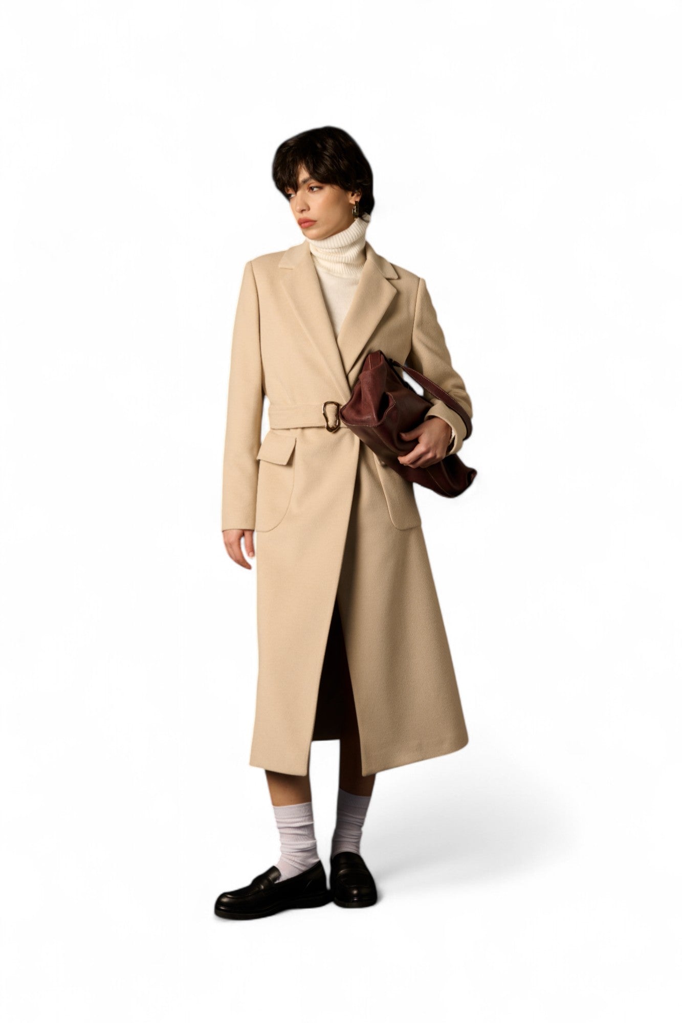 Il cappotto Sidney con cintura in vita è il tuo alleato di stile unico e versatile. La sua lunghezza elegante completa ogni outfit senza sforzo: basta aggiungere un paio di accessori per un look impeccabile. La cintura con fibbia dorata valorizza la silhouette, mentre le tasche a toppa richiamano un mood denim ricco di classe. Scegli Sidney per un capo che parla di te.