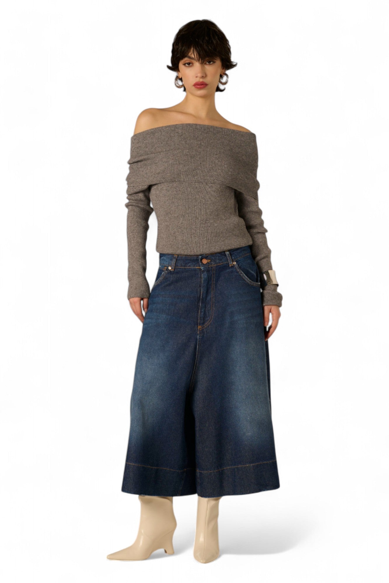 Il Pantagonna Andra in denim slegato è il ritorno al comfort senza rinunciare allo stile. Realizzato in un tessuto morbido e leggero, offre una vestibilità comoda a vita bassa con gamba ampia cropped e cavallo super sceso. Le linee ampie e i volumi geometrici, uniti a un raffinato lavaggio scuro, creano un capo unico e versatile. Perfetto per chi vuole sentirsi a proprio agio e al passo con le tendenze. Sei pronta a indossarle la rivoluzione?