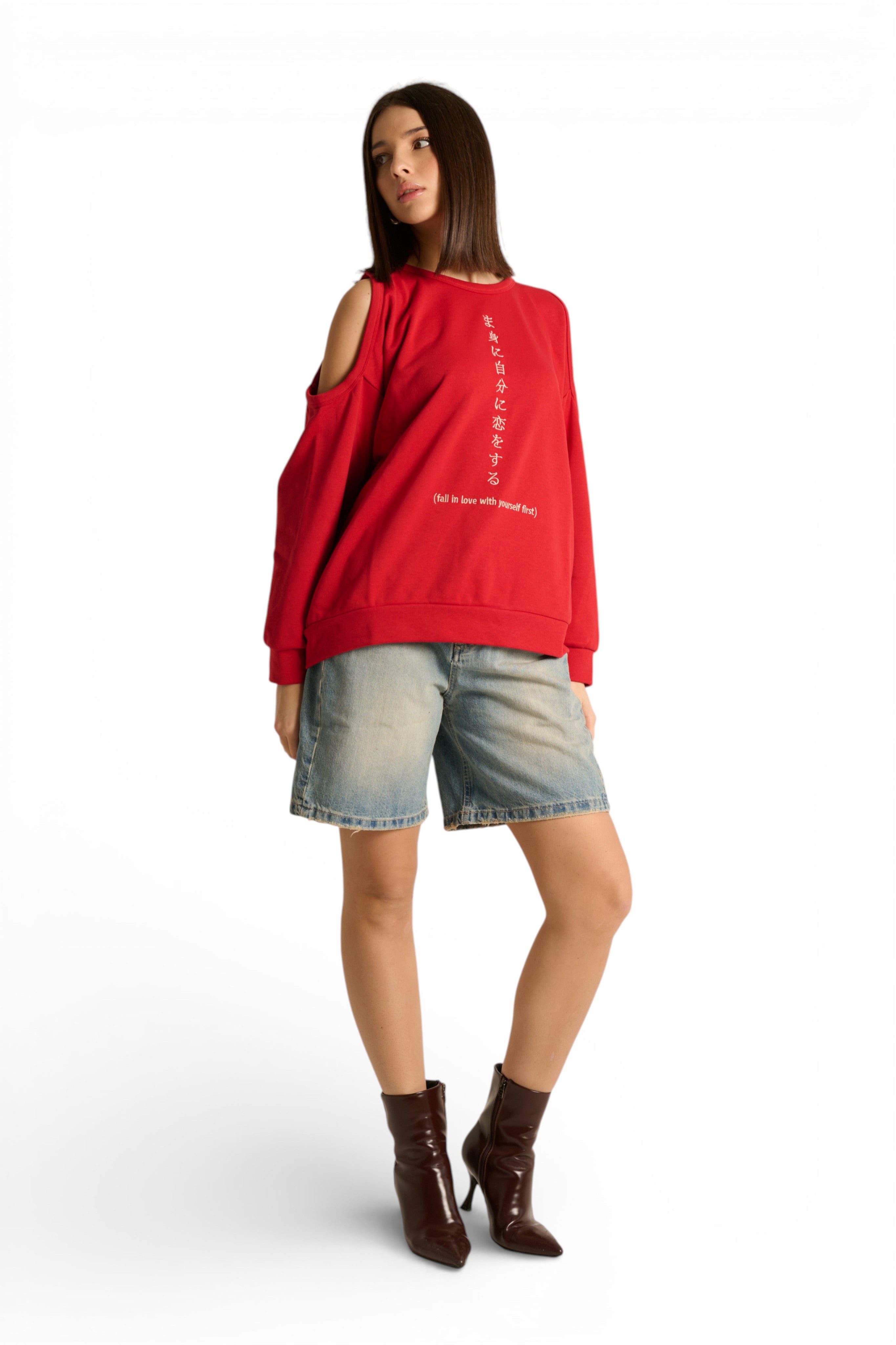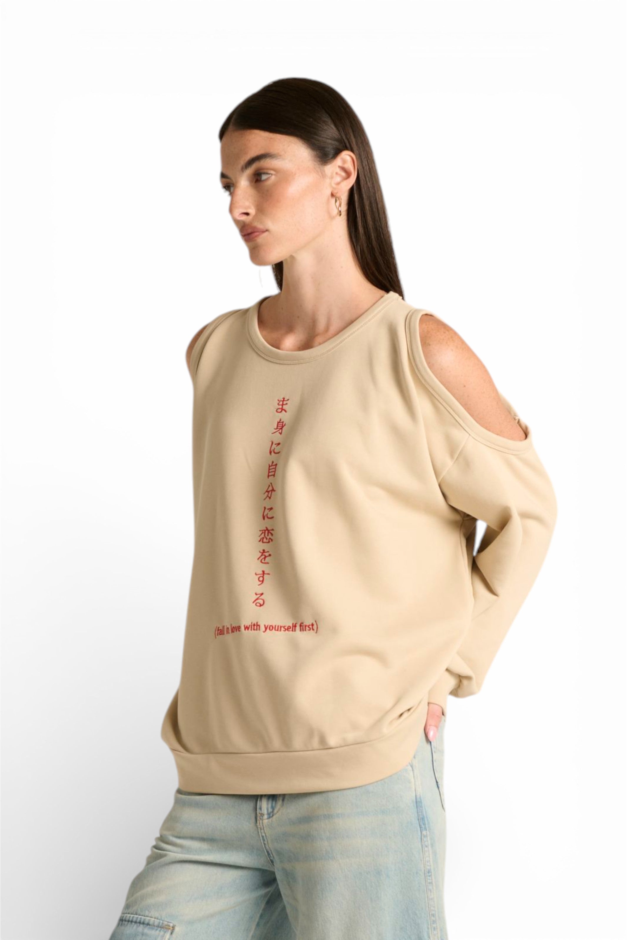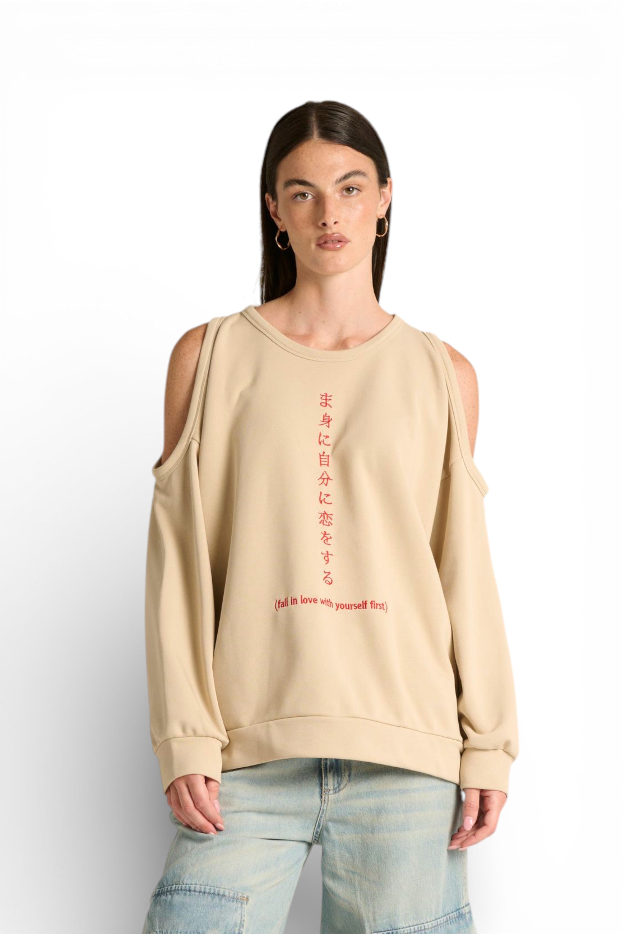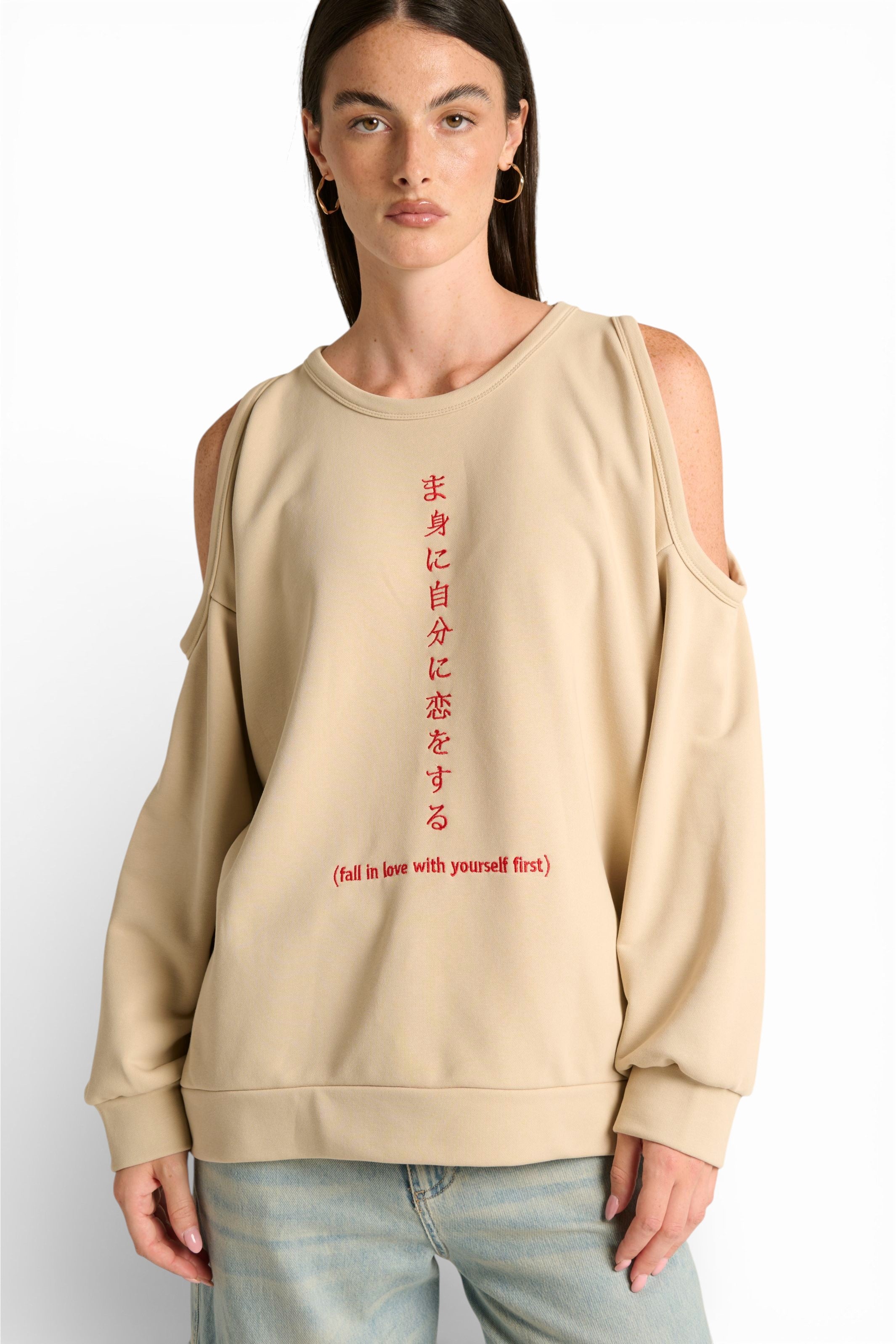 Aiko è la felpa che ridefinisce il concetto di stile urban contemporaneo. La super vestibilità oversize garantisce comfort assoluto, mentre il dettaglio cutout spalle aggiunge un tocco unico e di tendenza. Il ricamo sul davanti "fall in love with yourself first" porta un messaggio potente e ispirante con stile japan. Cool, casual e super particolare: scegli questa felpa se vuoi fare la differenza!