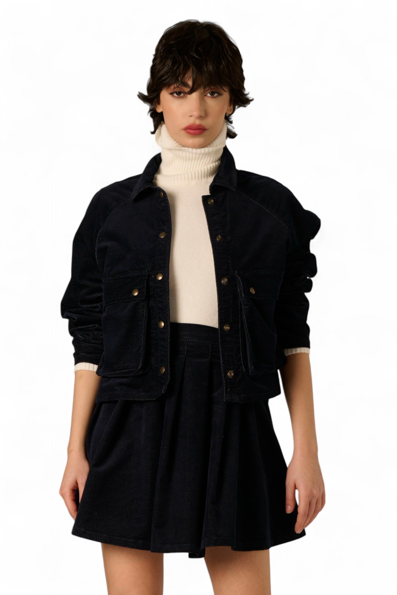 Il giubbino Jolie bomber in denim floccato unisce eleganza e comfort con un design box fit relaxed. Realizzato in denim morbido con floccatura diagonale, offre un tocco soffice e una vestibilità avvolgente. Dotato di bottoni a pressione, tasche frontali e maniche raglan, è perfetto per un look raffinato ma casual. Abbinalo alla gonna Fara per un total look denim irresistibile, sofisticato e di tendenza. Scopri il piacere di indossare un capo che coniuga stile e comodità in ogni occasione.