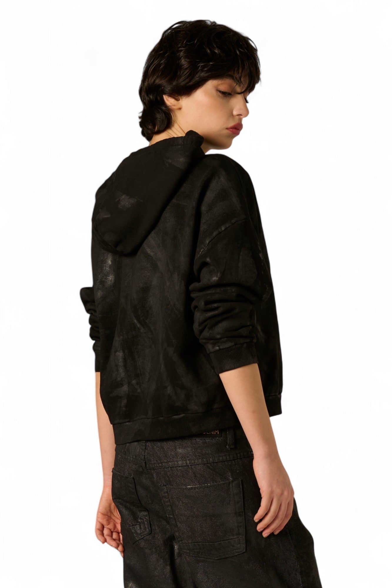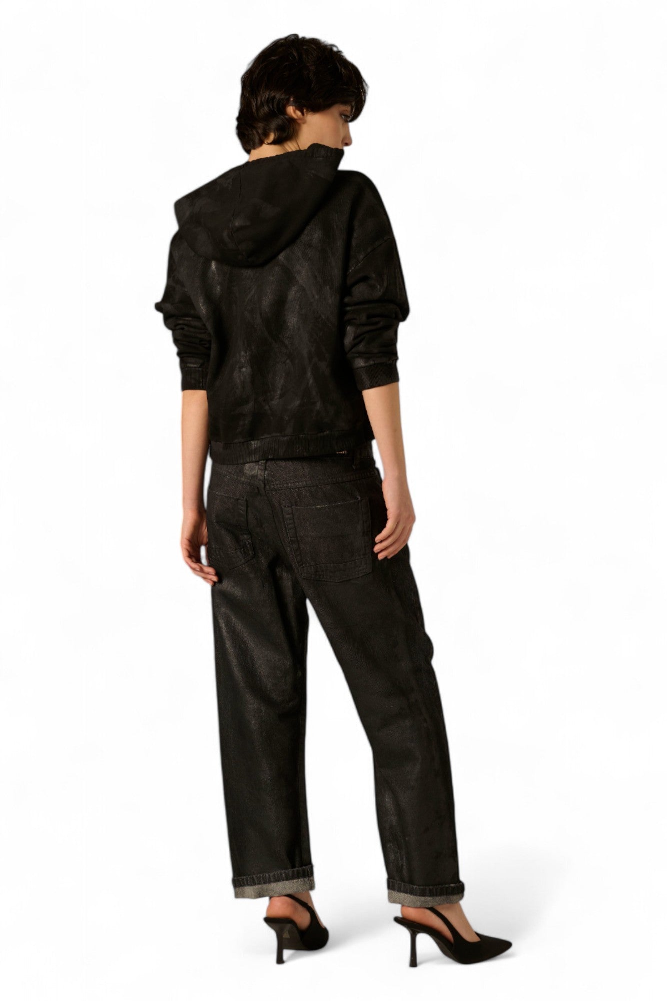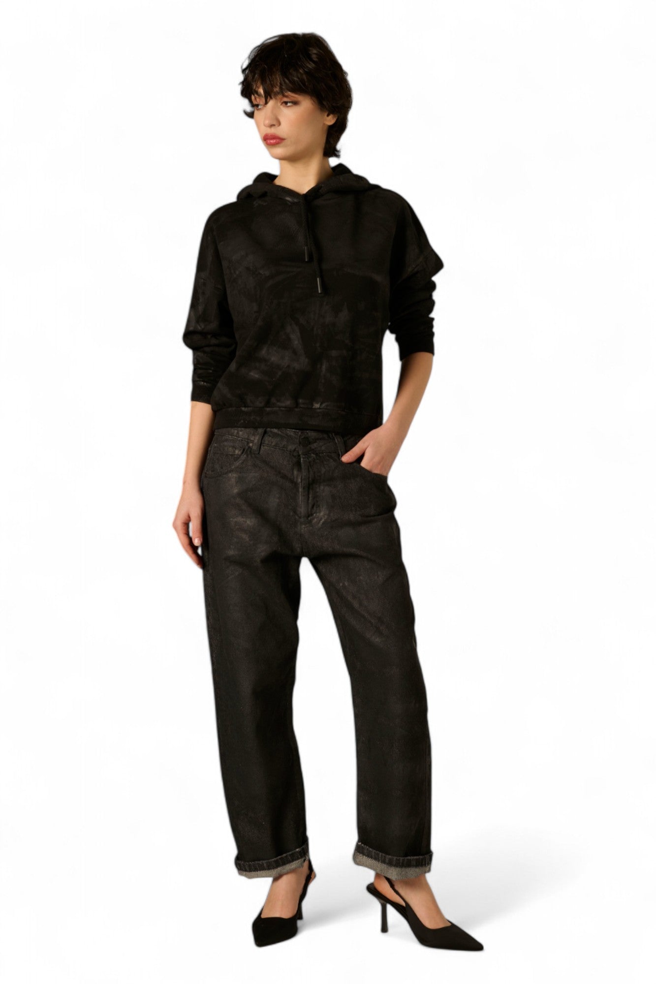La felpa Wylma è il capo salva look perfetto per la nuova stagione. Realizzata in felpa 100% cotone con una spalmatura gommata all over, unisce carattere e praticità. Il fit relaxed e il cappuccio la rendono comoda e versatile, ideale per chi cerca stile senza rinunciare al comfort.