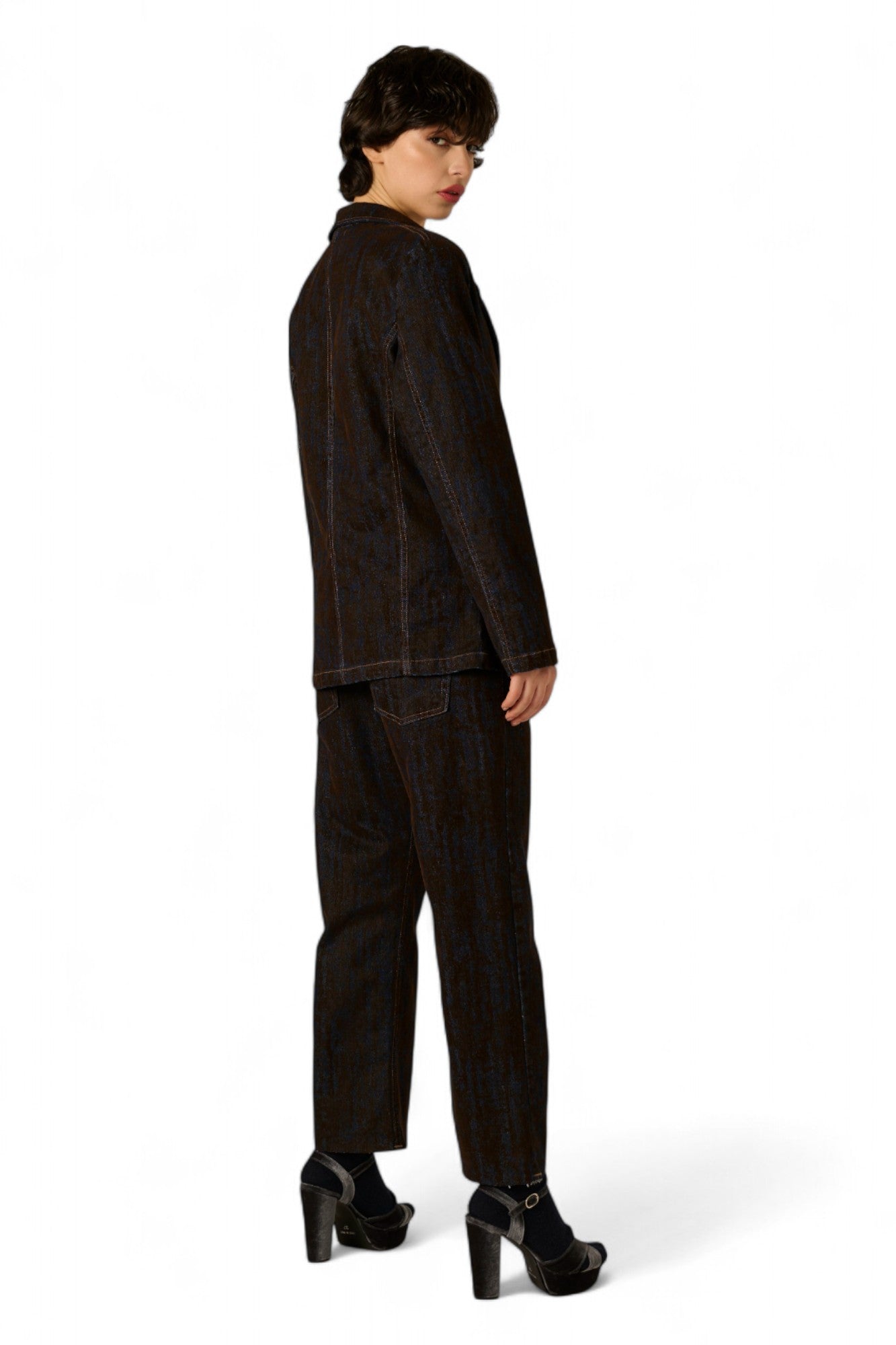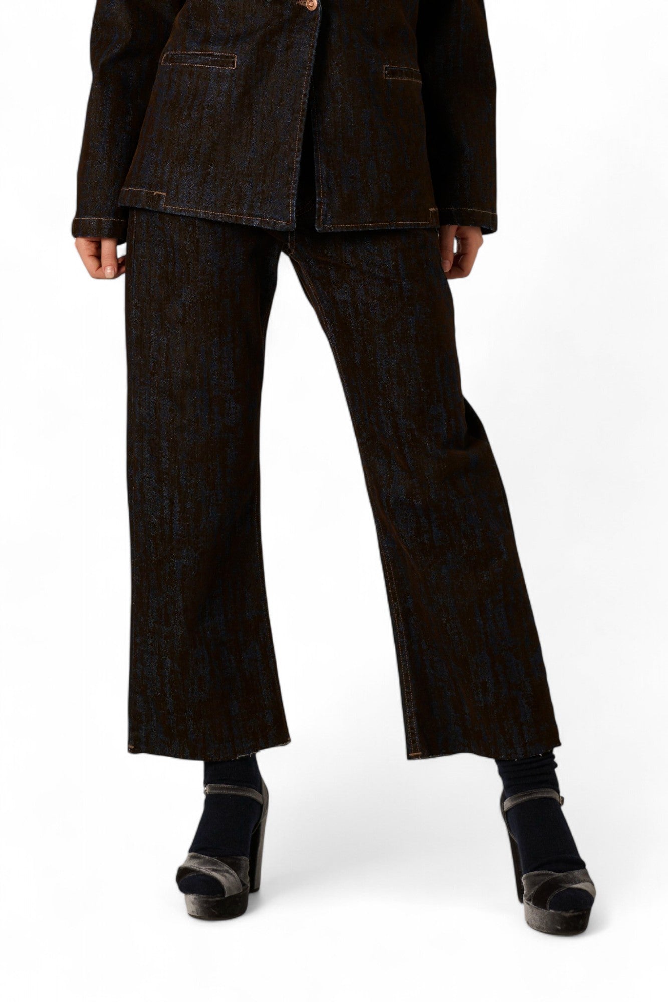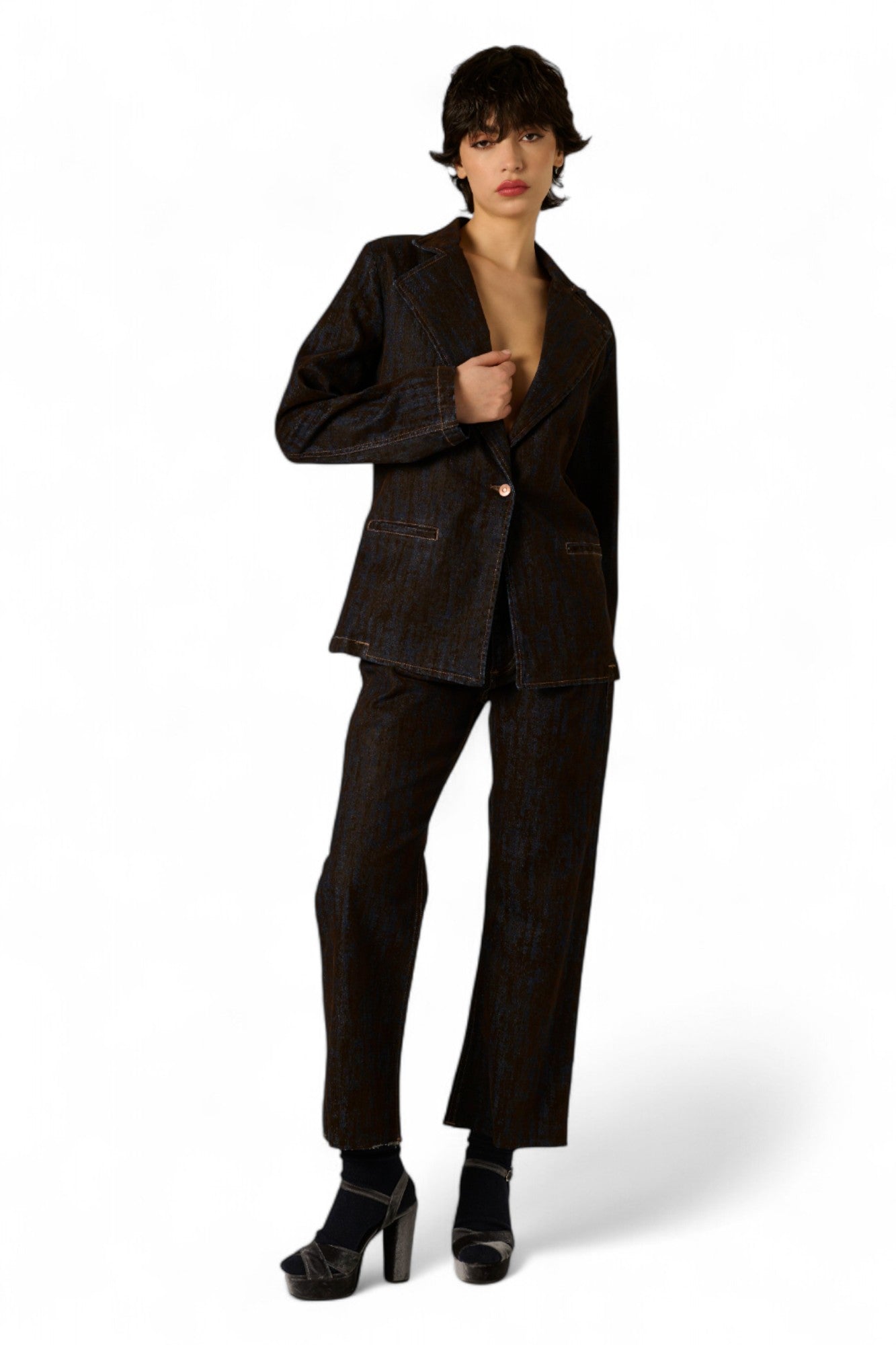 I pantaloni Denise a trombetta in denim floccato uniscono stile e comfort per la stagione autunnale. Il taglio pulito e regolare con fondo a taglio vivo valorizza la silhouette, mentre il tessuto in denim scuro, arricchito da una placcatura irregolare floccata, offre una texture morbida e calda. Perfetti da abbinare alla giacca Lily, disponibili nelle varianti moro e nero per un completo elegante e contemporaneo.