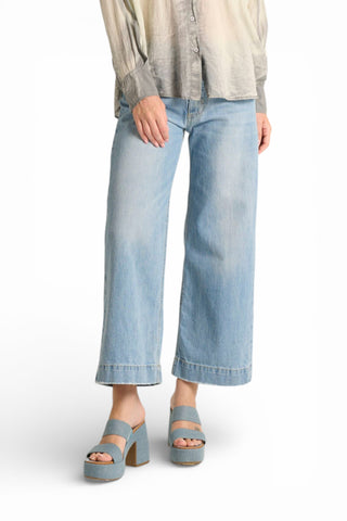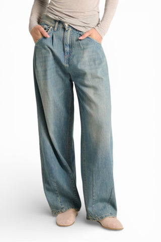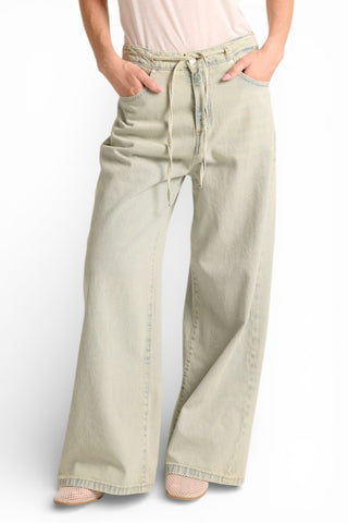Jeans Diana straight wide leg con coulisse in denim slegato