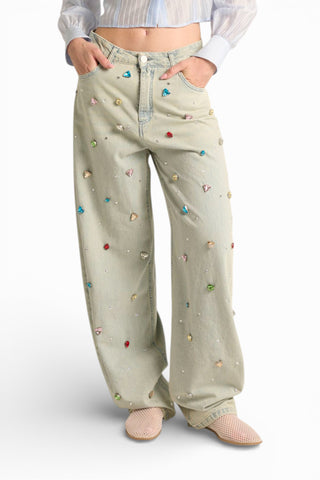 Jeans Born oversize con tasca america a vita bassa in denim slegato