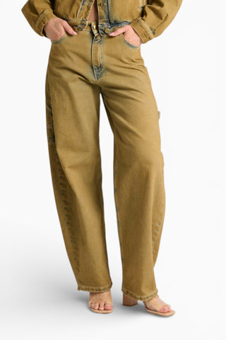 Jeans Ritha oversize straight con riprese al ginocchio in denim slegato