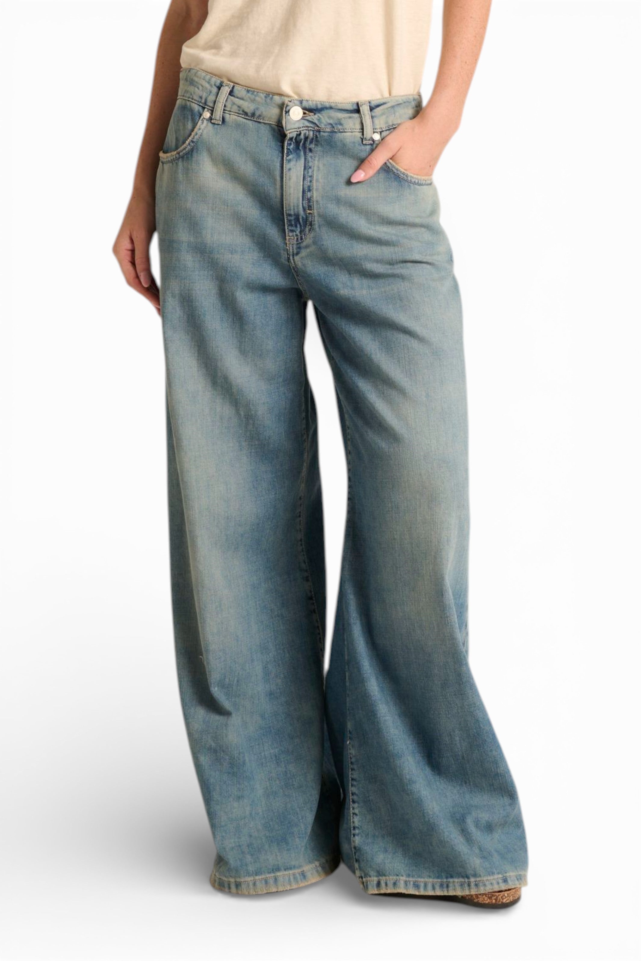 Scopri il nostro Anne, il jeans wide leg dalla leggerezza straordinaria e dal carattere autentico. Realizzato in denim slegato light con lavaggio used, sfumature e sporcature leggere al thè, è il capo perfetto per chi cerca uno stile fresco e vissuto.