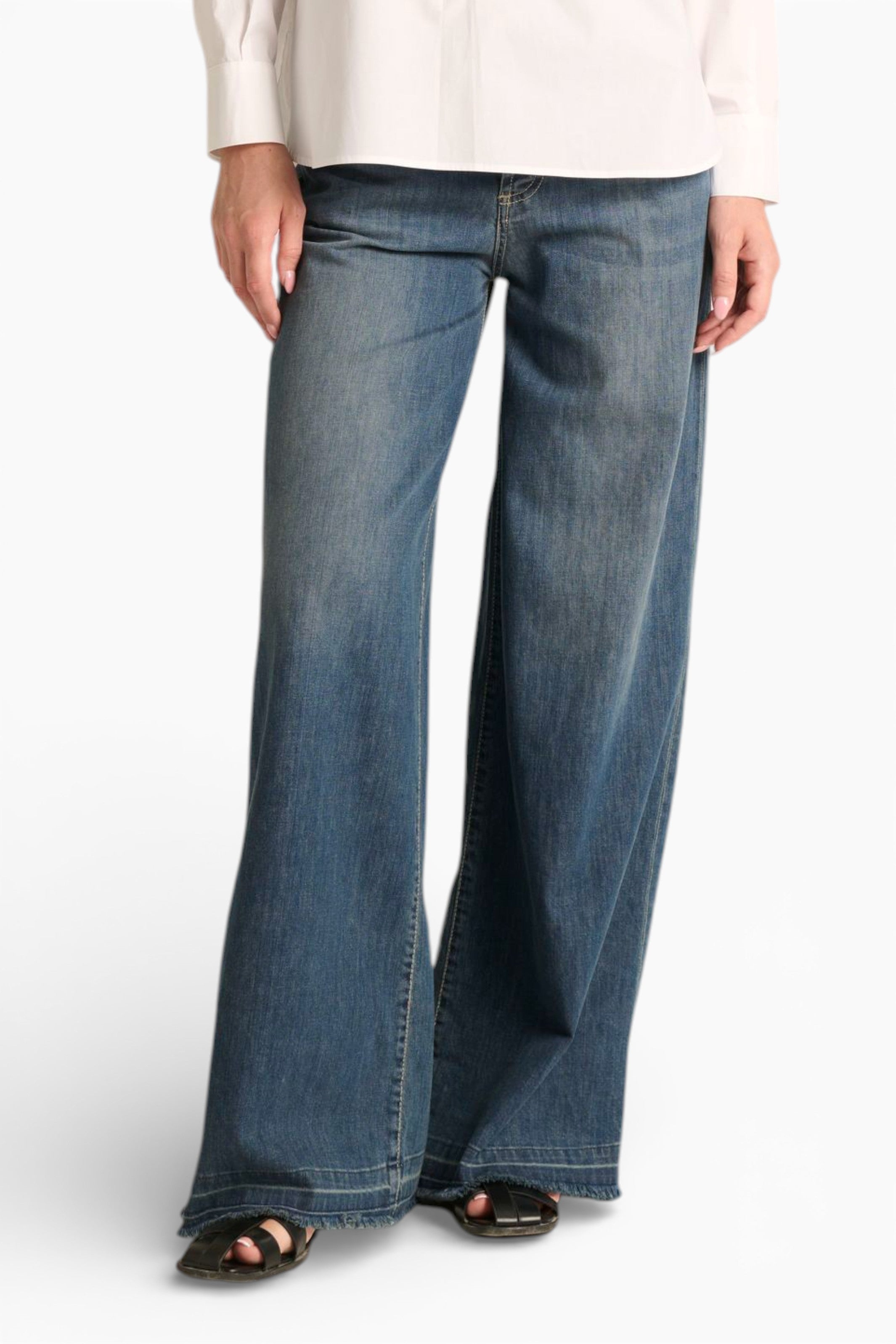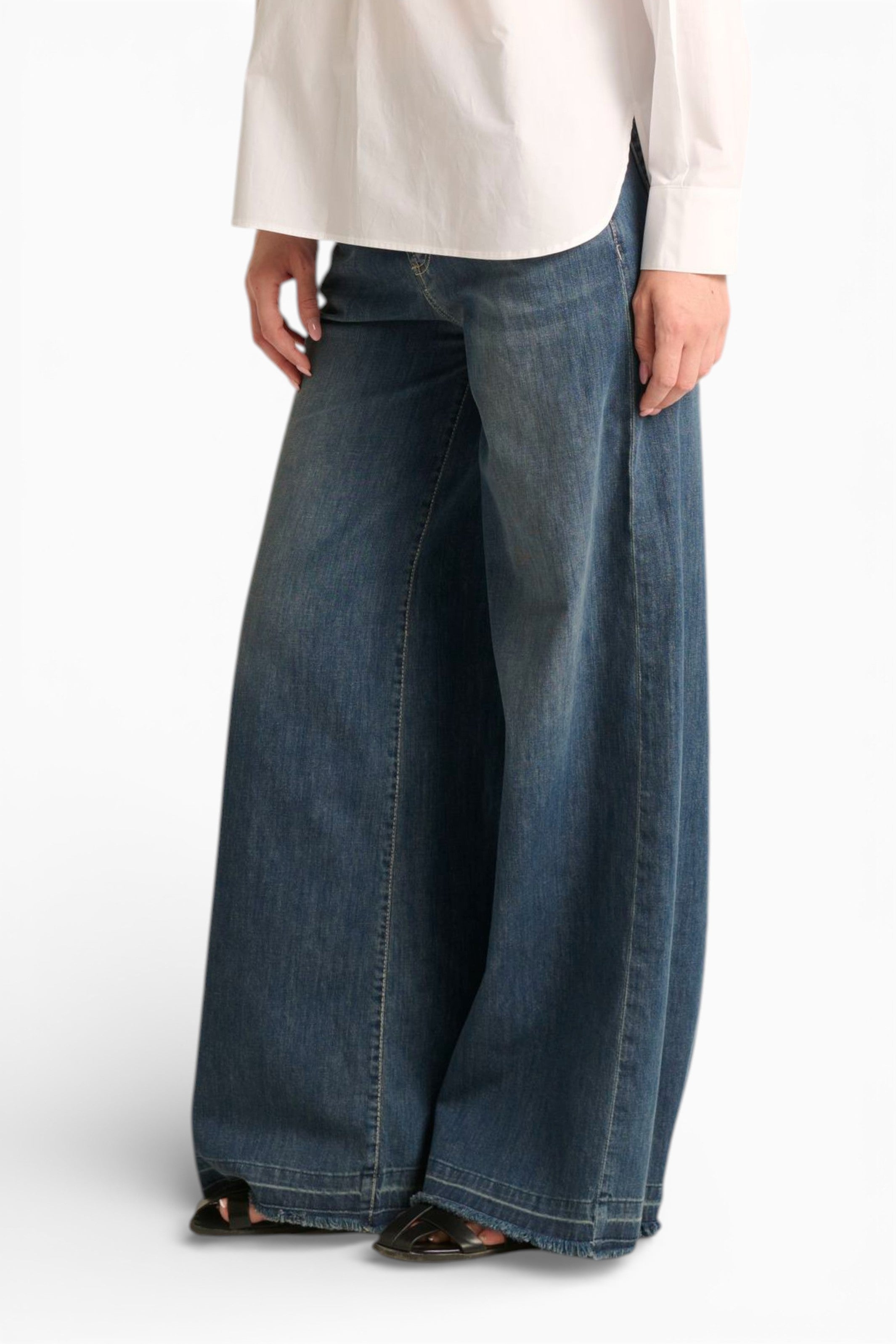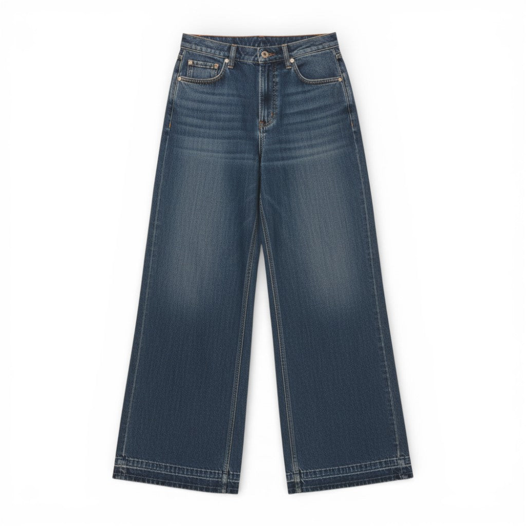 Scopri il nostro Becca, il jeans wide leg che ridefinisce il comfort senza compromessi. Realizzato in denim leggero elasticizzato con lavaggio medio scuro pulito e senza tempo, è il capo perfetto per chi cerca uno stile evergreen e versatile con un comfort assoluto.