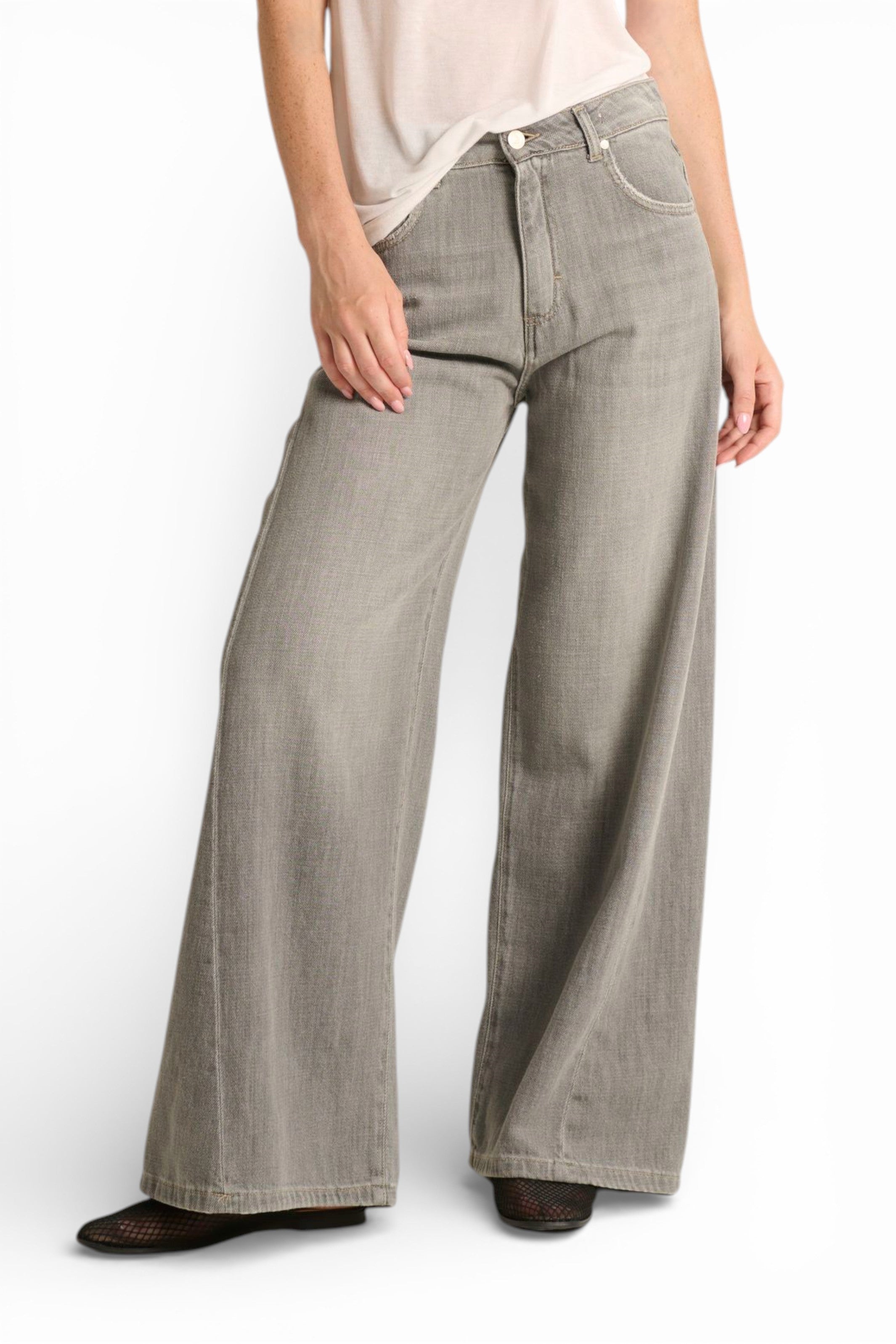 I jeans Chloe wide leg in denim grigio slegato sono il perfetto equilibrio tra stile vintage e comfort moderno. Il lavaggio grigio su denim slegato conferisce un carattere unico e ricercato, mentre il taglio wide leg regala un'allure rilassata e contemporanea. ✨