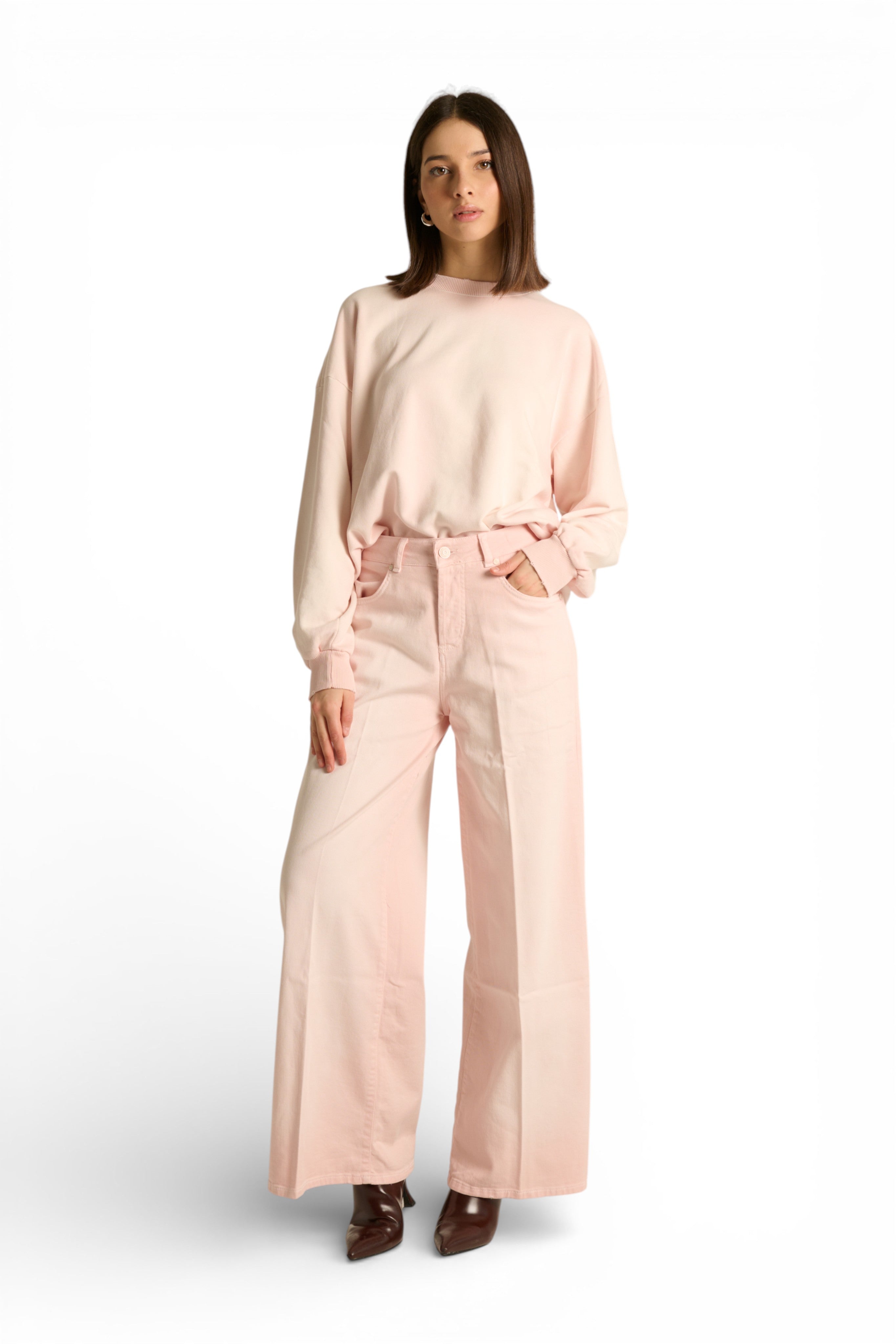 Riscopri il fascino senza tempo di Becca, il wide leg che non può mancare nel tuo guardaroba. Questa stagione lo presentiamo con un esclusivo trattamento spraywash (un effetto nuvola sfumato che rende ogni capo unico) che cattura l'essenza di uno stile contemporaneo e ricercato.