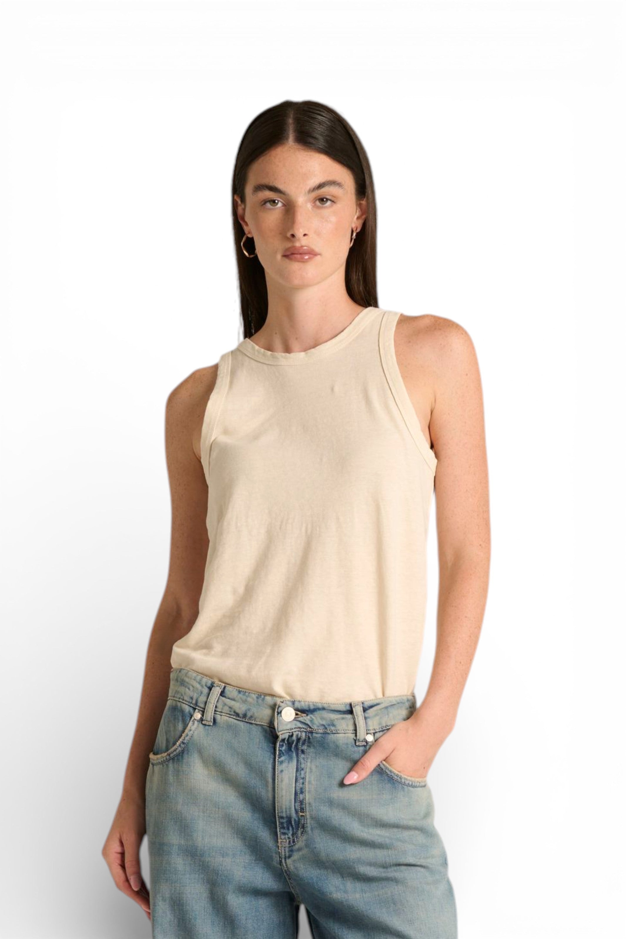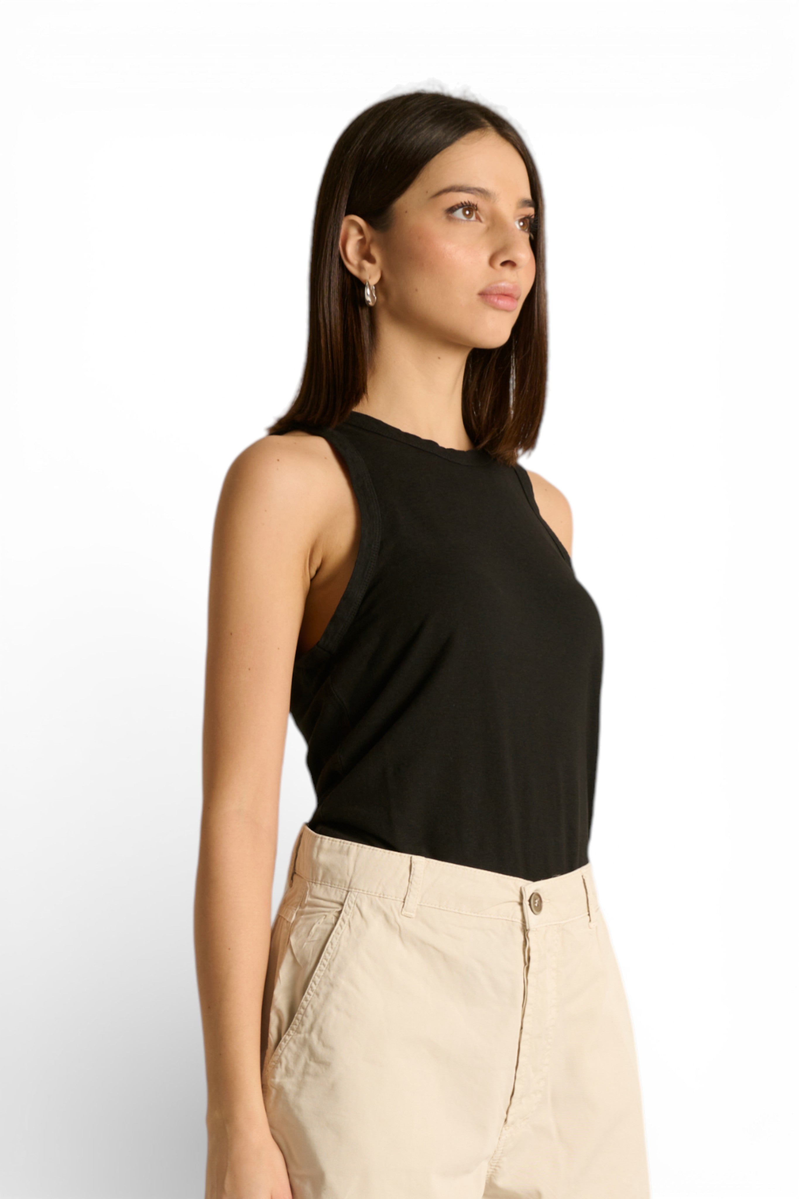 Scopri la Canotta Lily basic in cotone misto lino, il capo essenziale che unisce comfort e versatilità in un design semplice e funzionale.