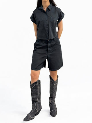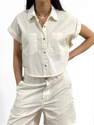 Realizzata in leggerissima gabardina di cotone con trattamento acid, la camicetta ROSY è l'essenza della freschezza estiva. Il suo design box fit con manichina corta ribaltata, fondo stondato, lunghezza cropped e tasche frontali la rende incredibilmente versatile. Perfetta abbinata a jeans o bermuda Harley per un look GDD assolutamente irresistibile. Non aspettare - questa è la camicia che trasformerà il tuo guardaroba!