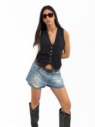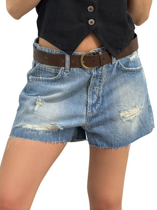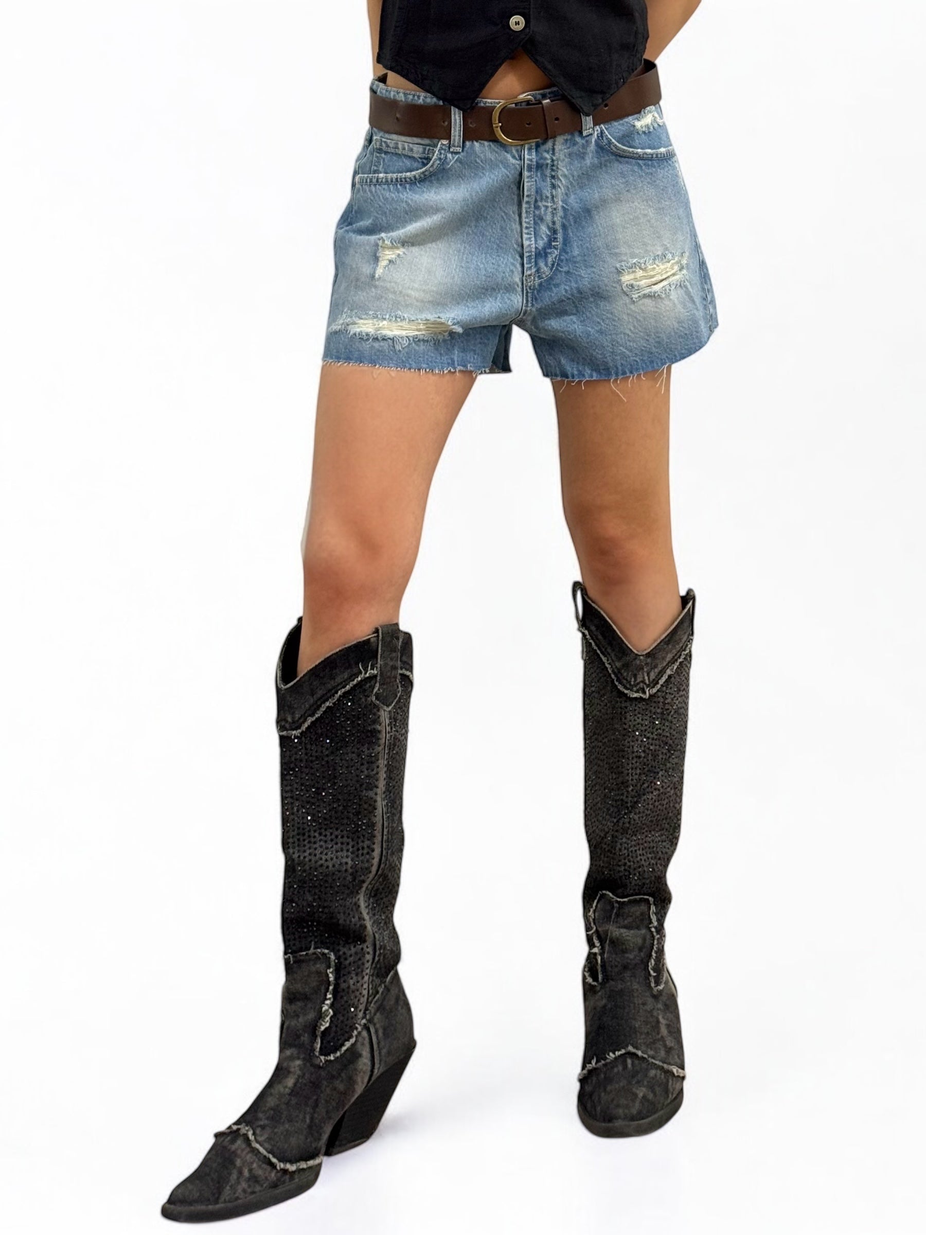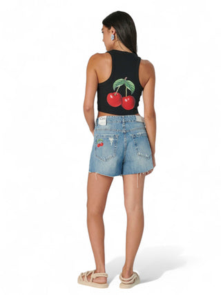 Shorts HENRY in denim used: il capo must-have per le vere #golddiggergirls! Realizzato con taglio vivo sul fondo e lavaggio super used con molature e abrasioni che lo rendono unico. La vestibilità relaxed garantisce comfort senza rinunciare allo stile. Disponibile in due varianti: con l'irresistibile stampa ciliegie o nella versione classica senza stampa. Quale sceglierai per esprimere la tua personalità?